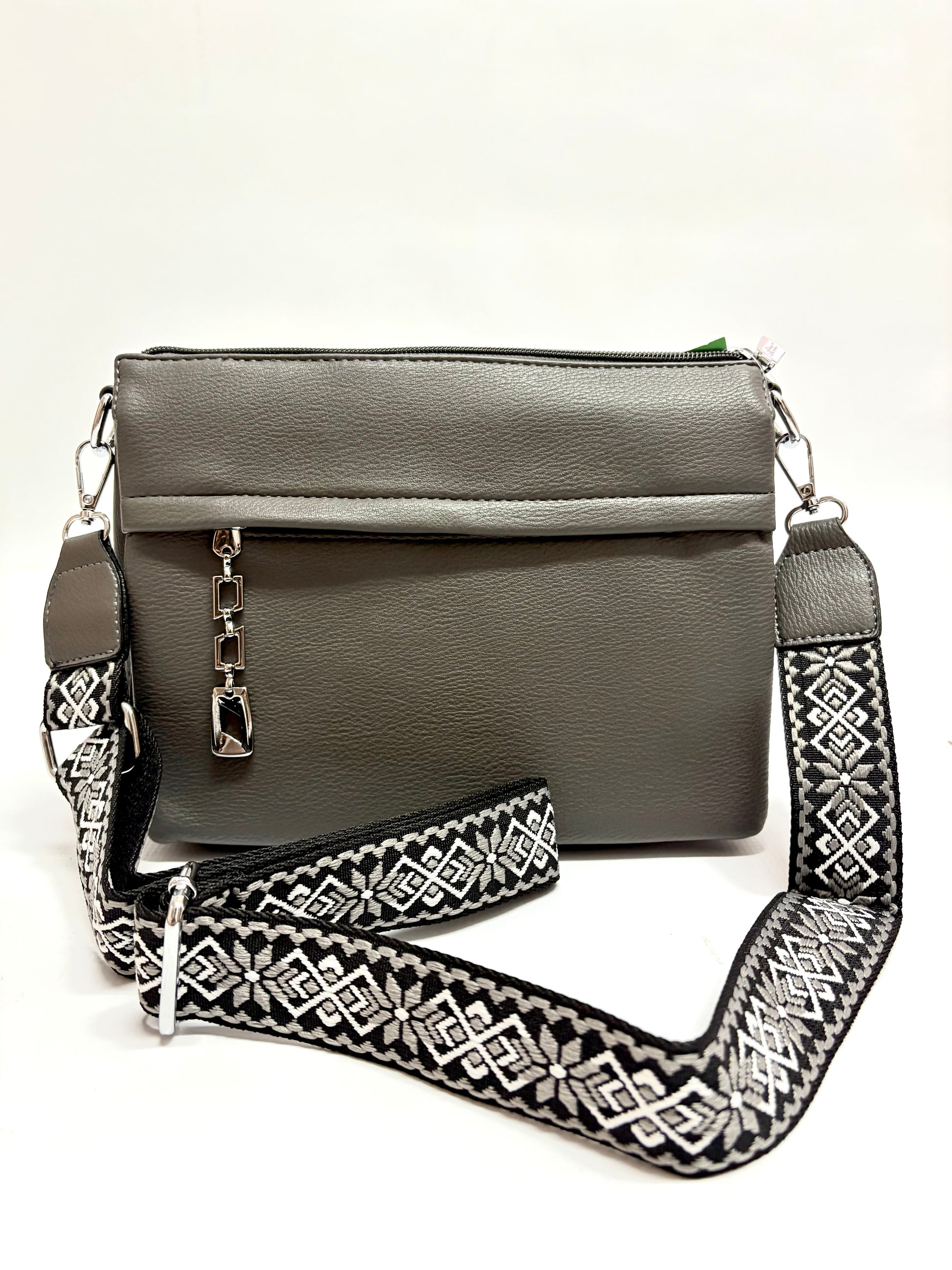 Charcoal Grey Crossbody Bag – Monochrome Strap Style