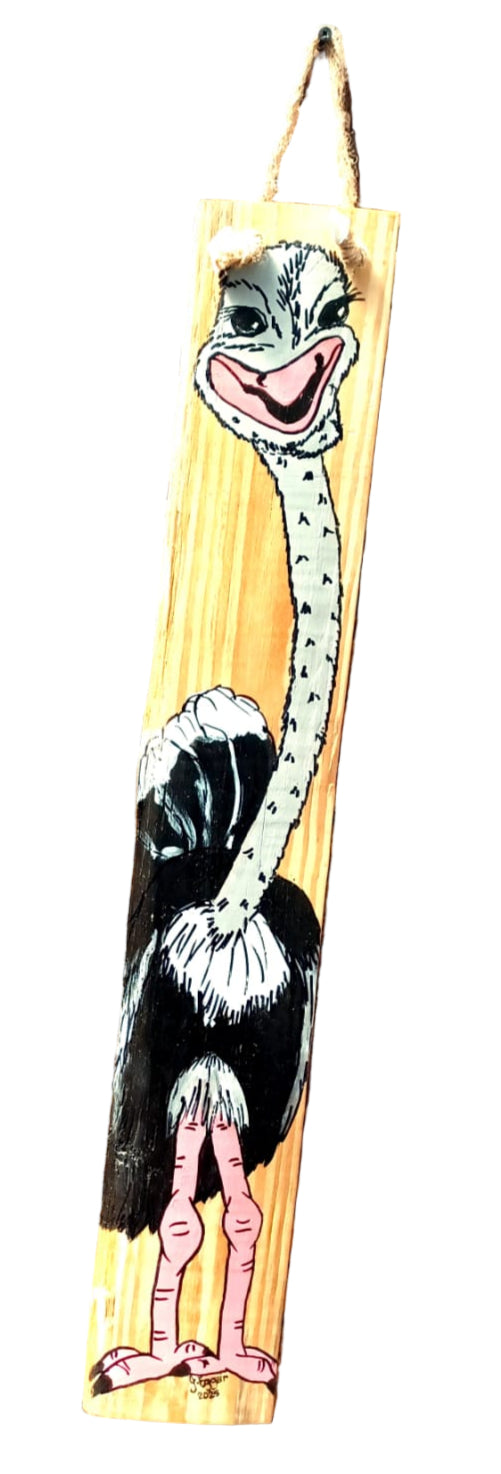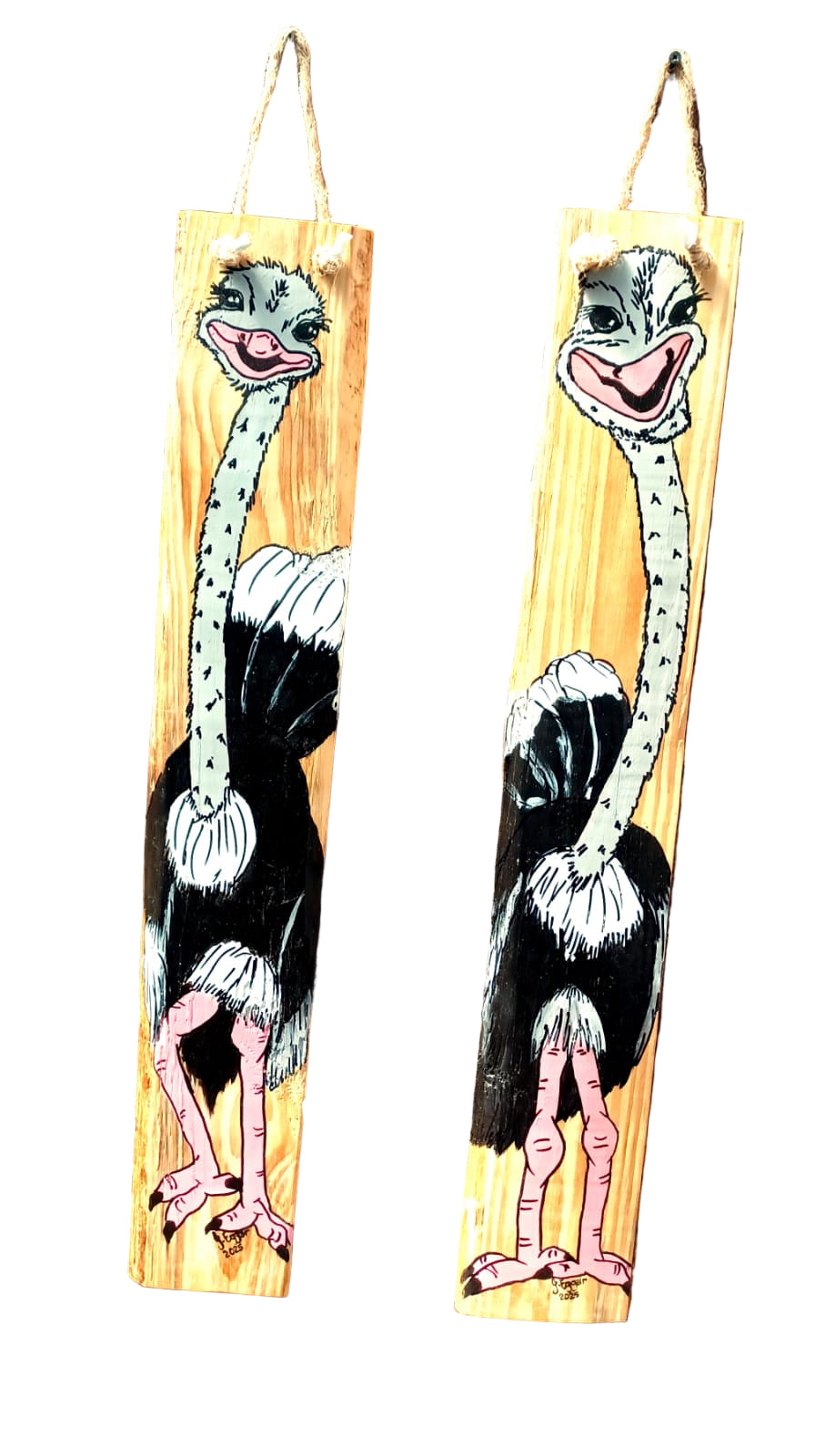 Dancing and Prancing Ostriches; hand painted Acrylic on Wood-ideal for indoor and outdoor decor-Varnished.