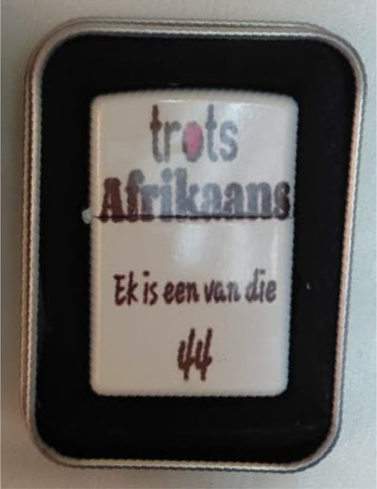 The Novelty Afrikaans Lighter offers a unique blend of practicality and cultural expression. Designed with an Afrikaans theme, it provides reliable flame performance ideal for everyday use, whether lighting candles, cigarettes, or campfires. Its distinctive design makes it a conversation starter while ensuring durability and ease of use. Perfect for those who appreciate both functionality and a personalized touch, this lighter stands out as a practical accessory with cultural flair.