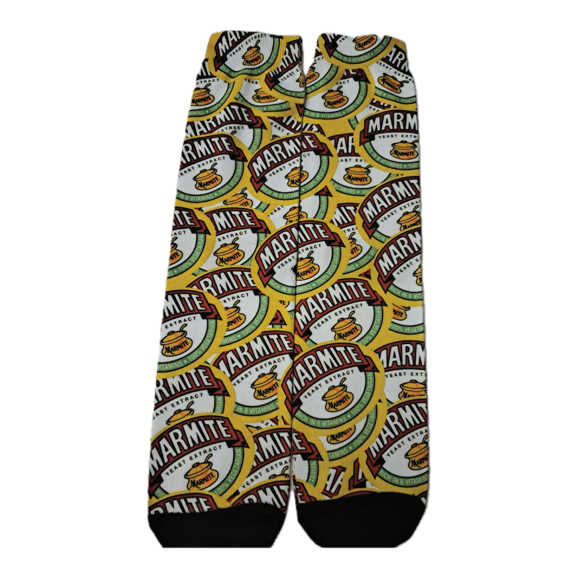 Wear your love of iconic spreads with these cheeky novelty socks celebrating the legendary yeast extract brand. Designed for fans of this polarizing pantry staple, these socks bring humor and nostalgia to your everyday look. With their distinctive branding and comfortable construction, they're a witty gift choice for those who appreciate bold flavors and bolder fashion statements.